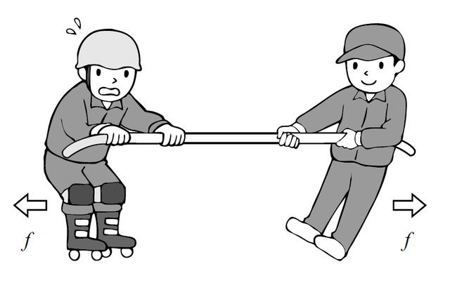 如果兩人都拉,則繩子上會有張力。在靜止?fàn)顟B(tài)下, 拉力(F)和被拉力(F)保持均衡, 產(chǎn)生的張力相同, 這很容易理解。